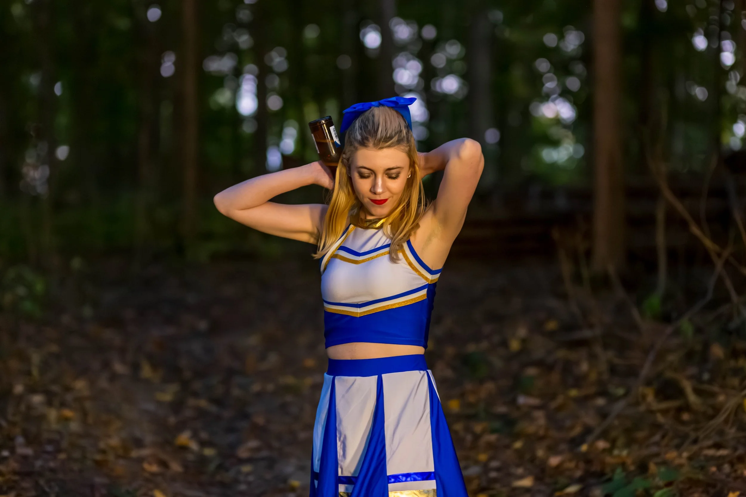 Good thing she finished that beer, or she'd be spilling it all over herself!